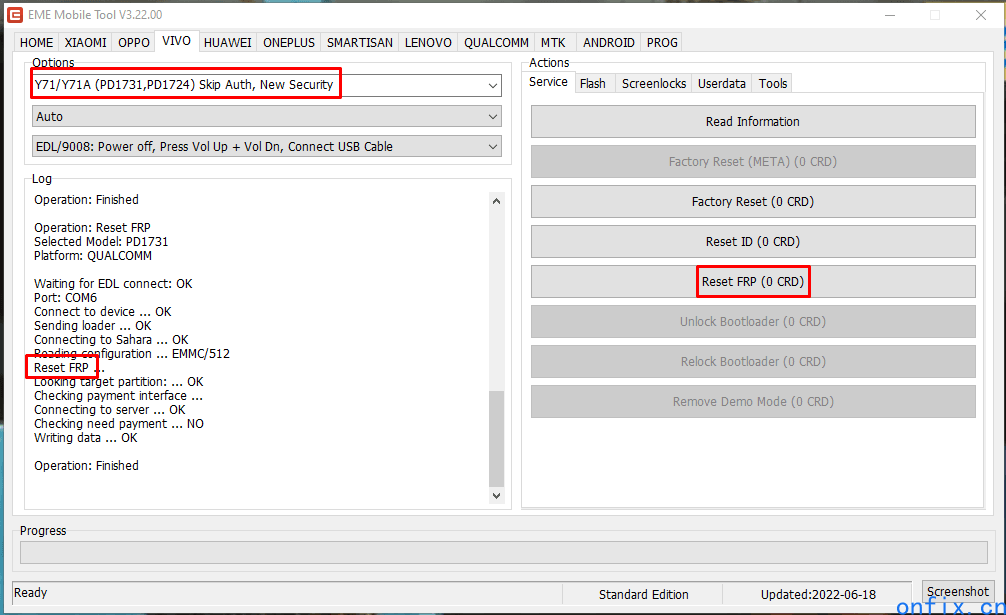 VIVO Y71 谷歌锁,使用EMT工具重置成功案例分享。