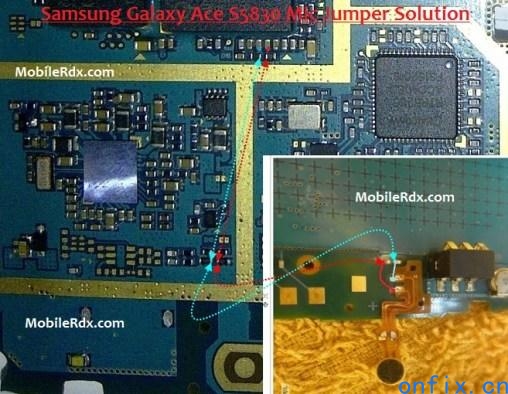 三星 GALAXY Ace GT-S5830 无送话、麦克mic不工作,跳线维修案例分享