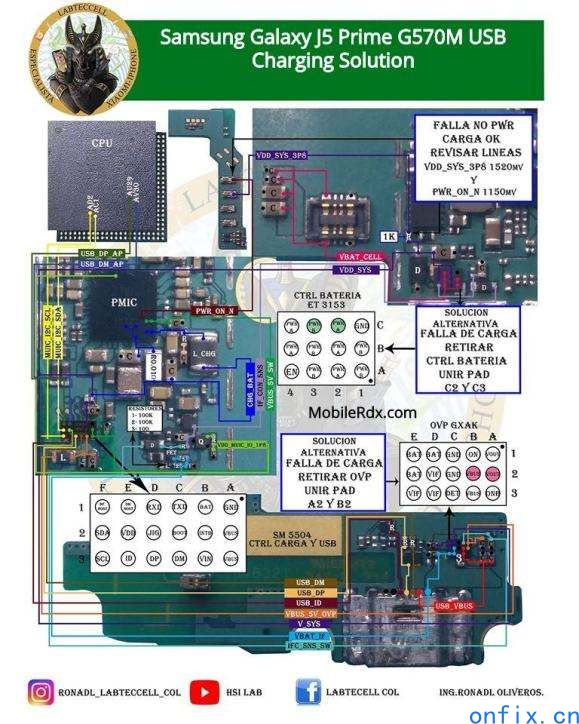 三星 Galaxy J5 Prime SM-G570M 不能充电问题,跳线维修案例分享