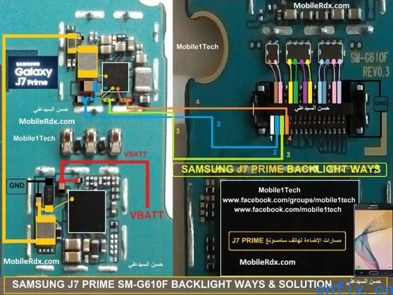 三星 Galaxy J7 Prime SM-G610M 无显示背光,跳线维修案例分享